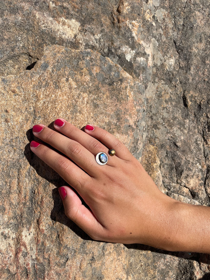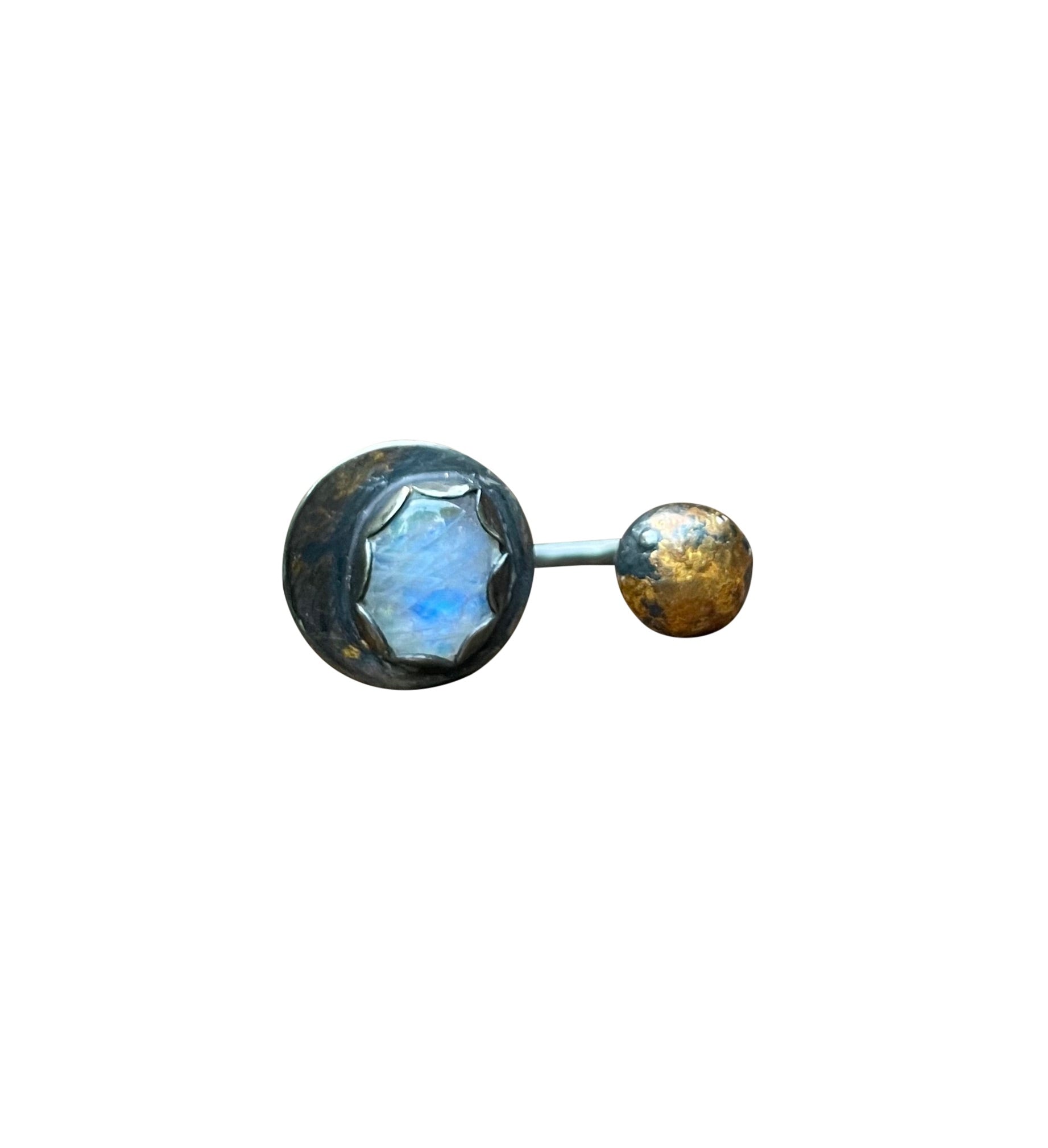 Rainbow Moonstone set in oxidized Sterling Silver .