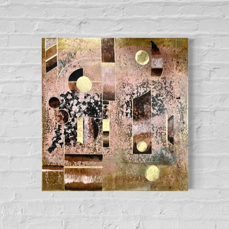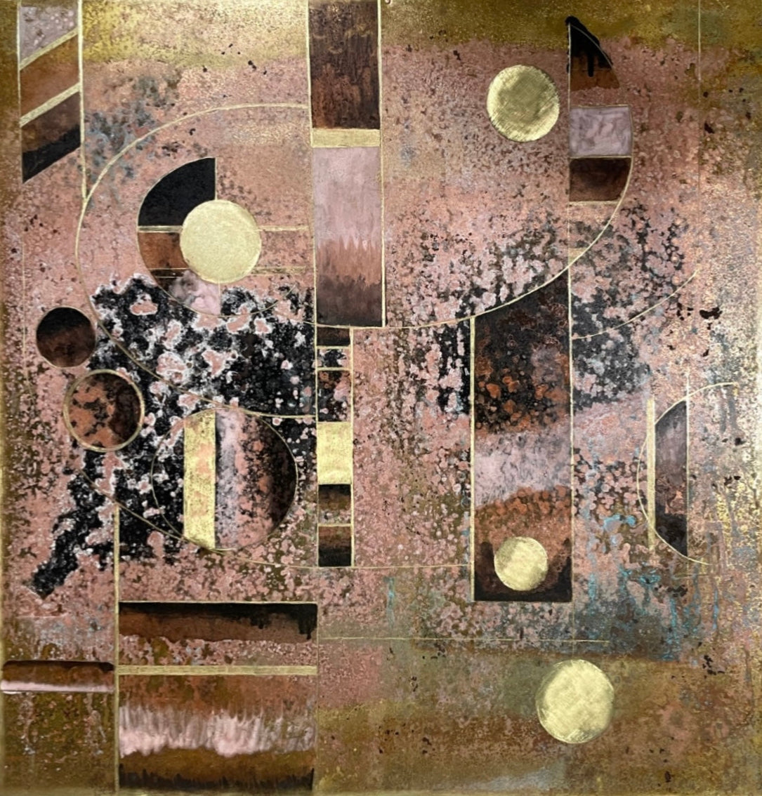 Patina on Brass, mounted on Wood.