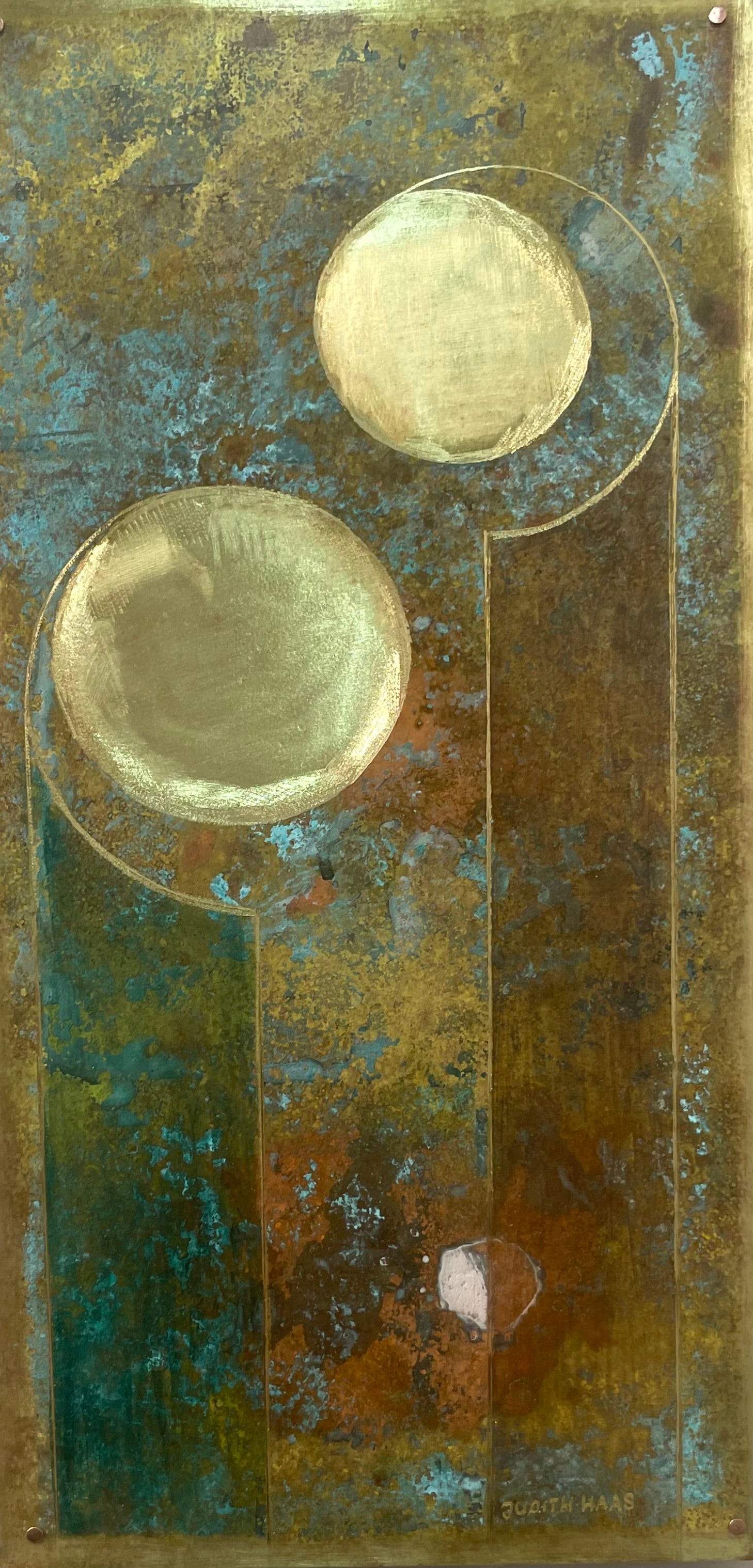 Patina on Brass, mounted on Wood.