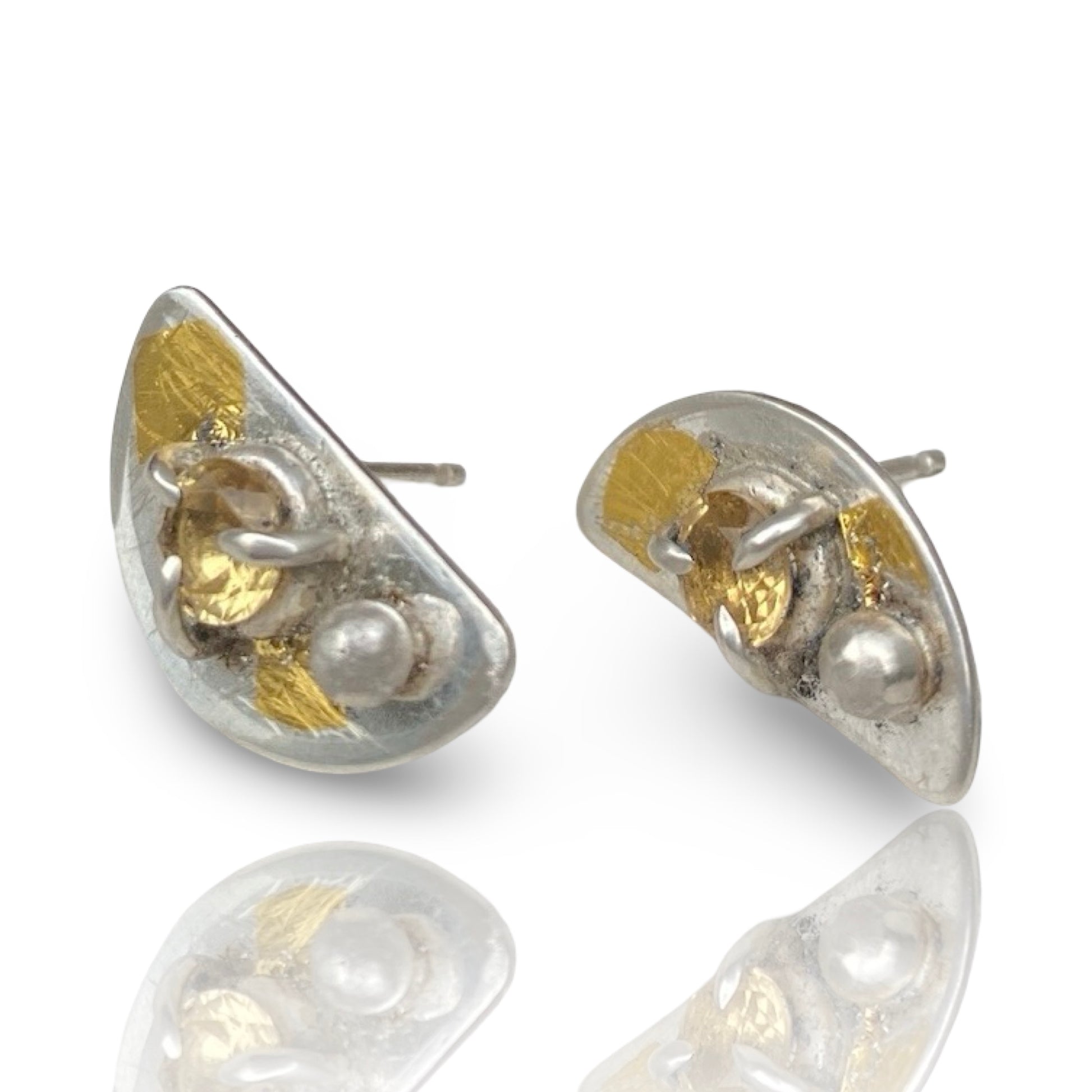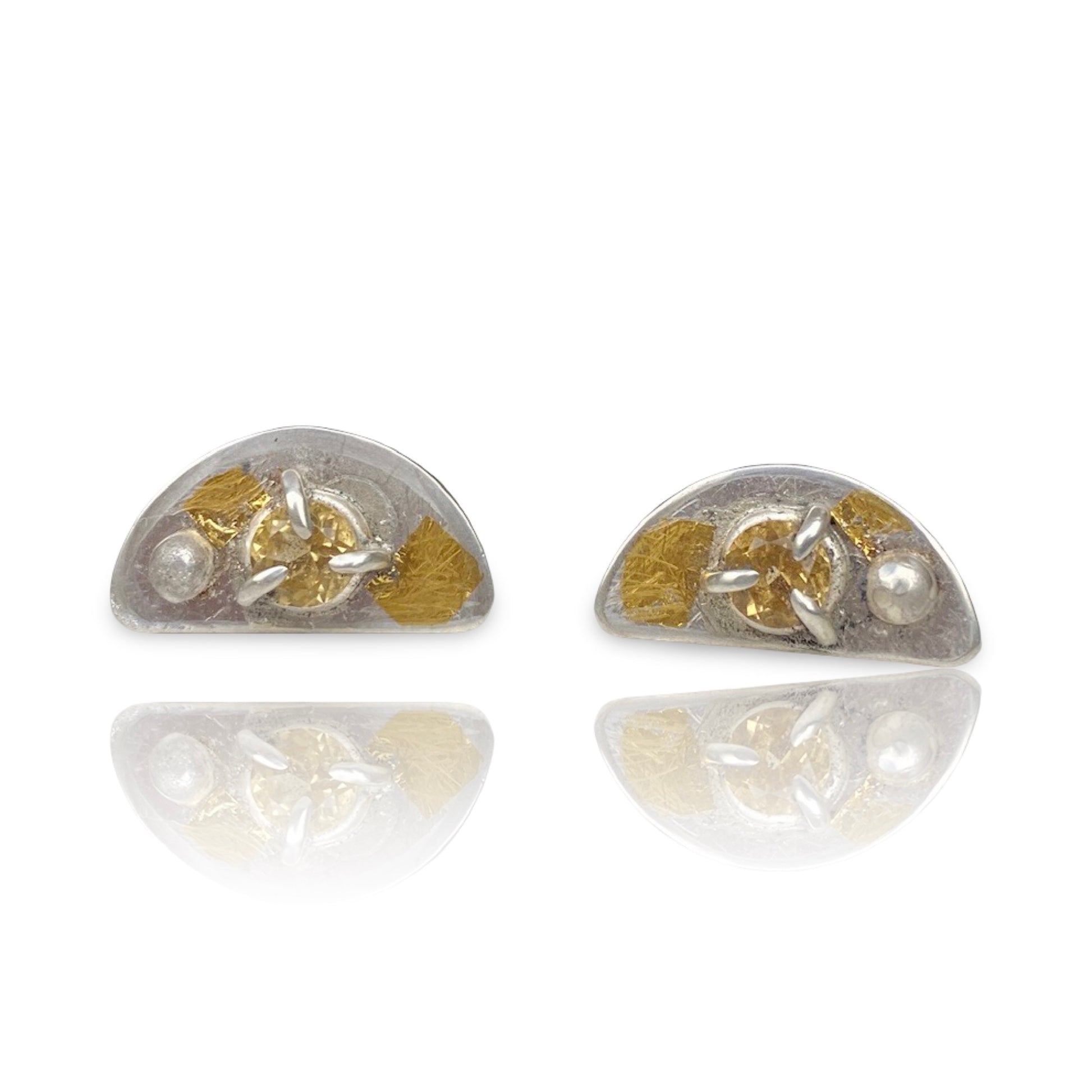 Fine Silver plate fused with 24k gold leaf set with citrine stone.