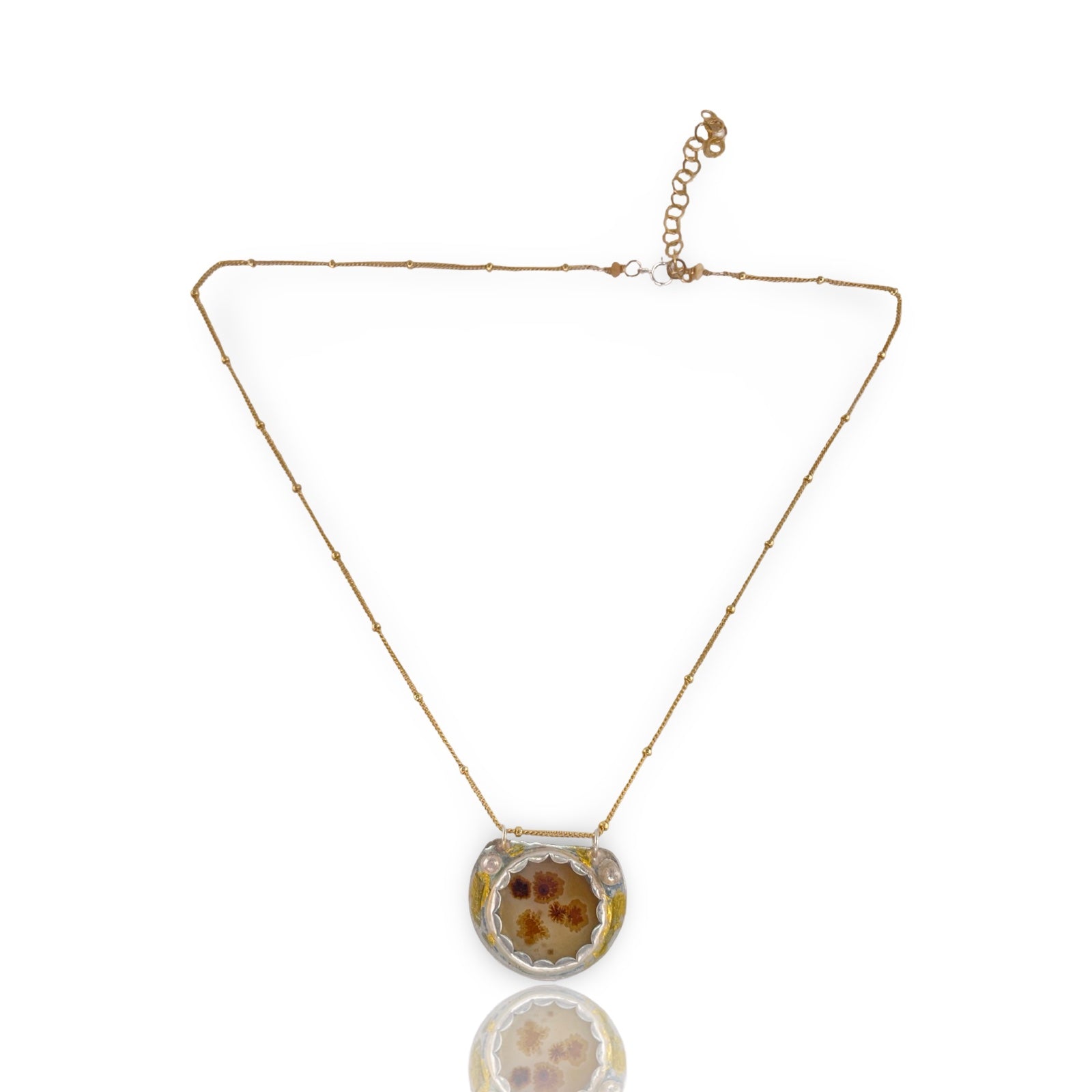 Dendritic Agate set in Sterling Silver, infused with 24K gold leaf.