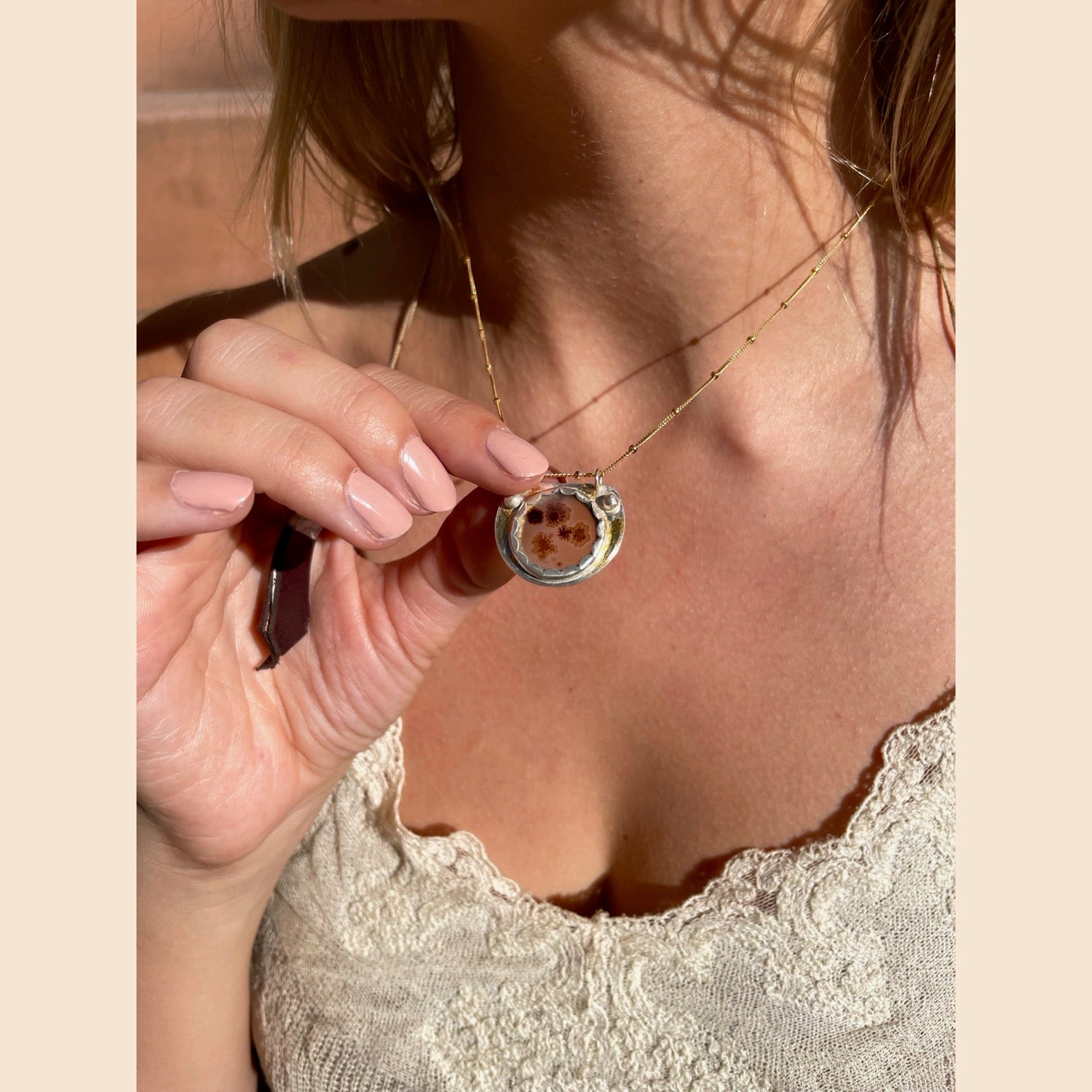 Half moon Dendritic Agate Necklace