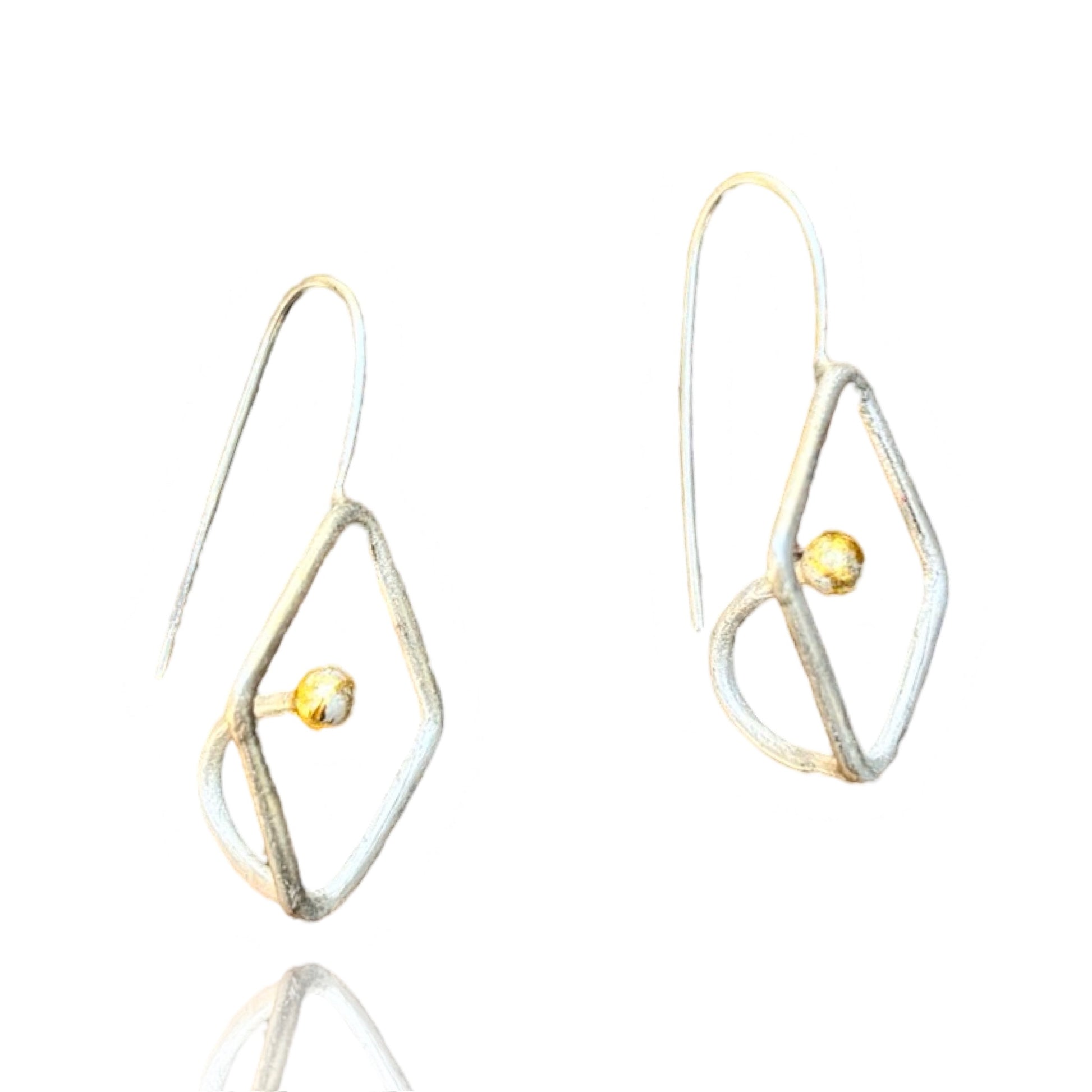 3/4 inch x 1/2 inch diamond shape hanging from a sterling silver hook.