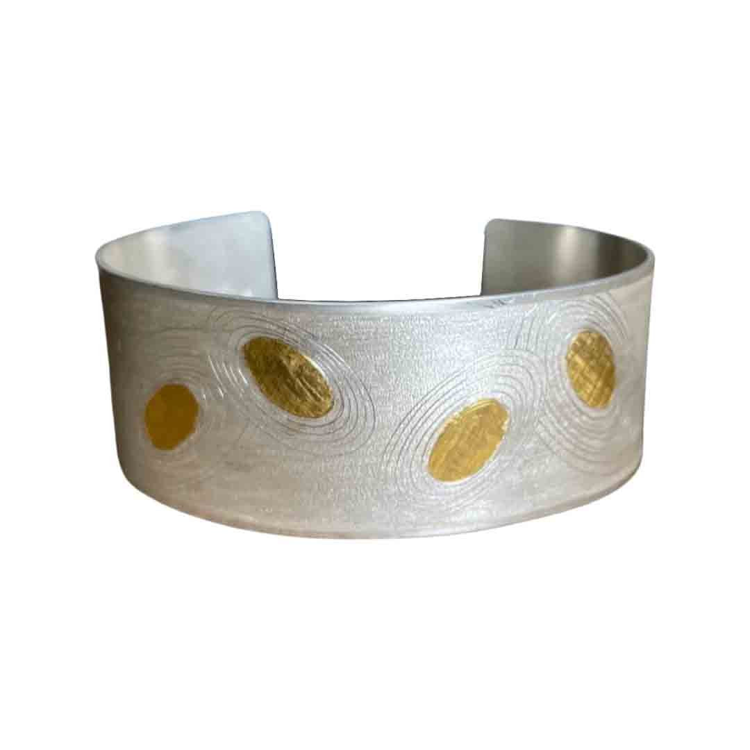 Fine Silver adjustable bracelet, fused with 23k gold leaf.