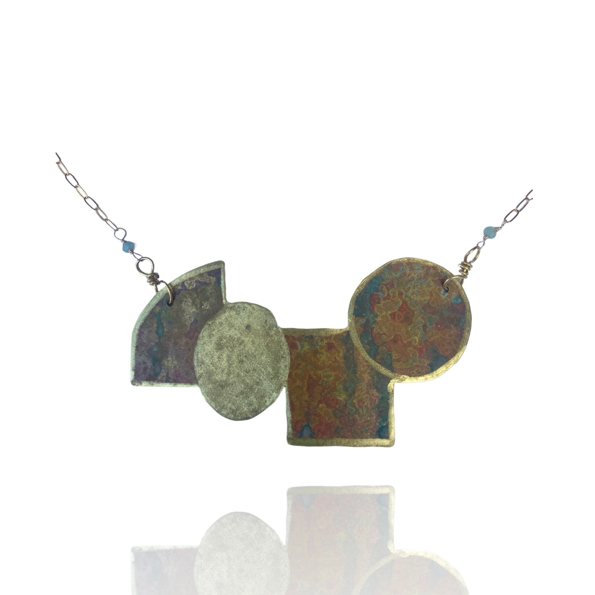 Patinated brass pendant with 14k gold filled chain.
