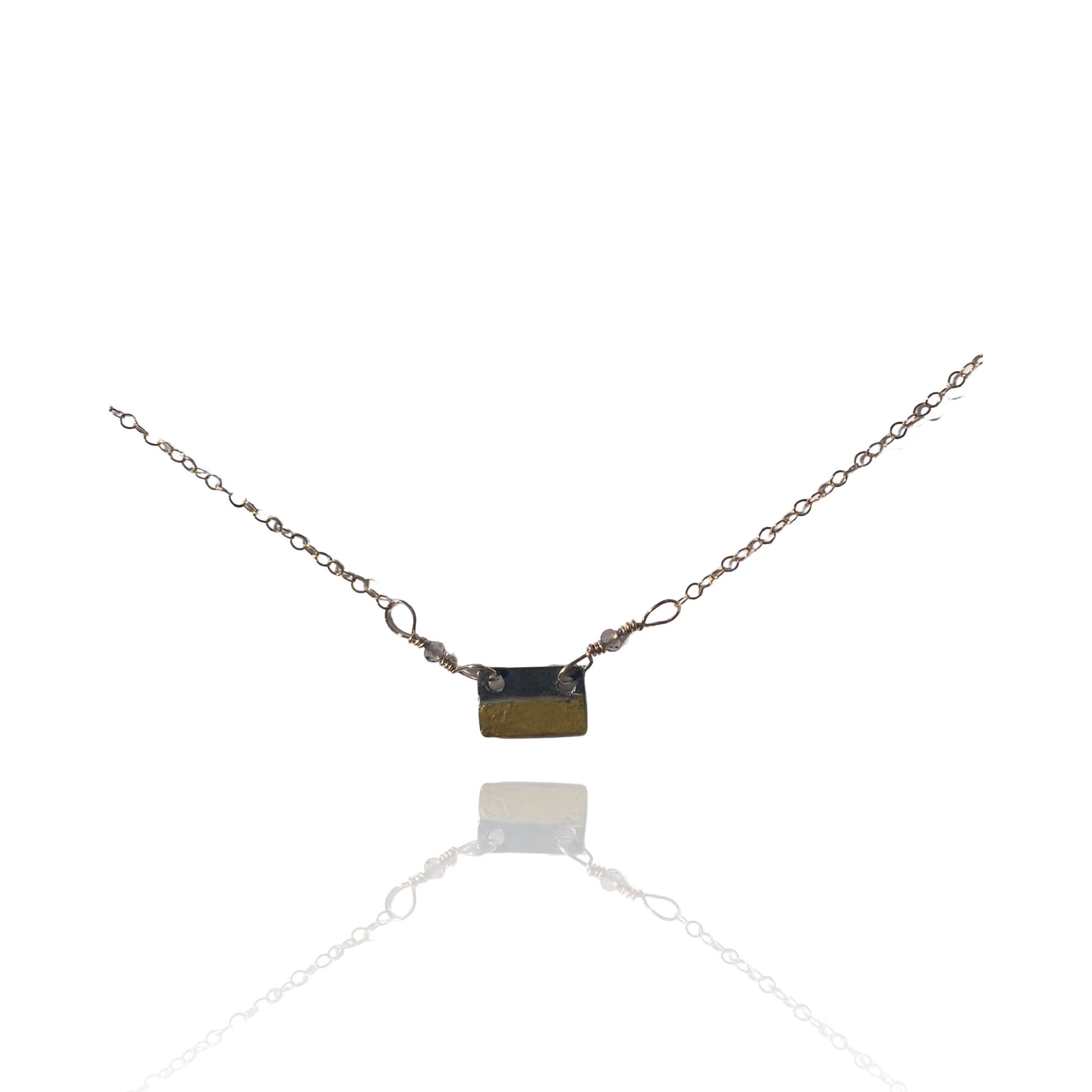 24k gold leaf fused onto mini fine silver (99%silver) pendant. Partially oxidized for black effect.