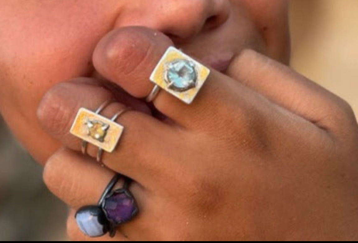 Gemstone set in Sterling Silver adjustable ring.