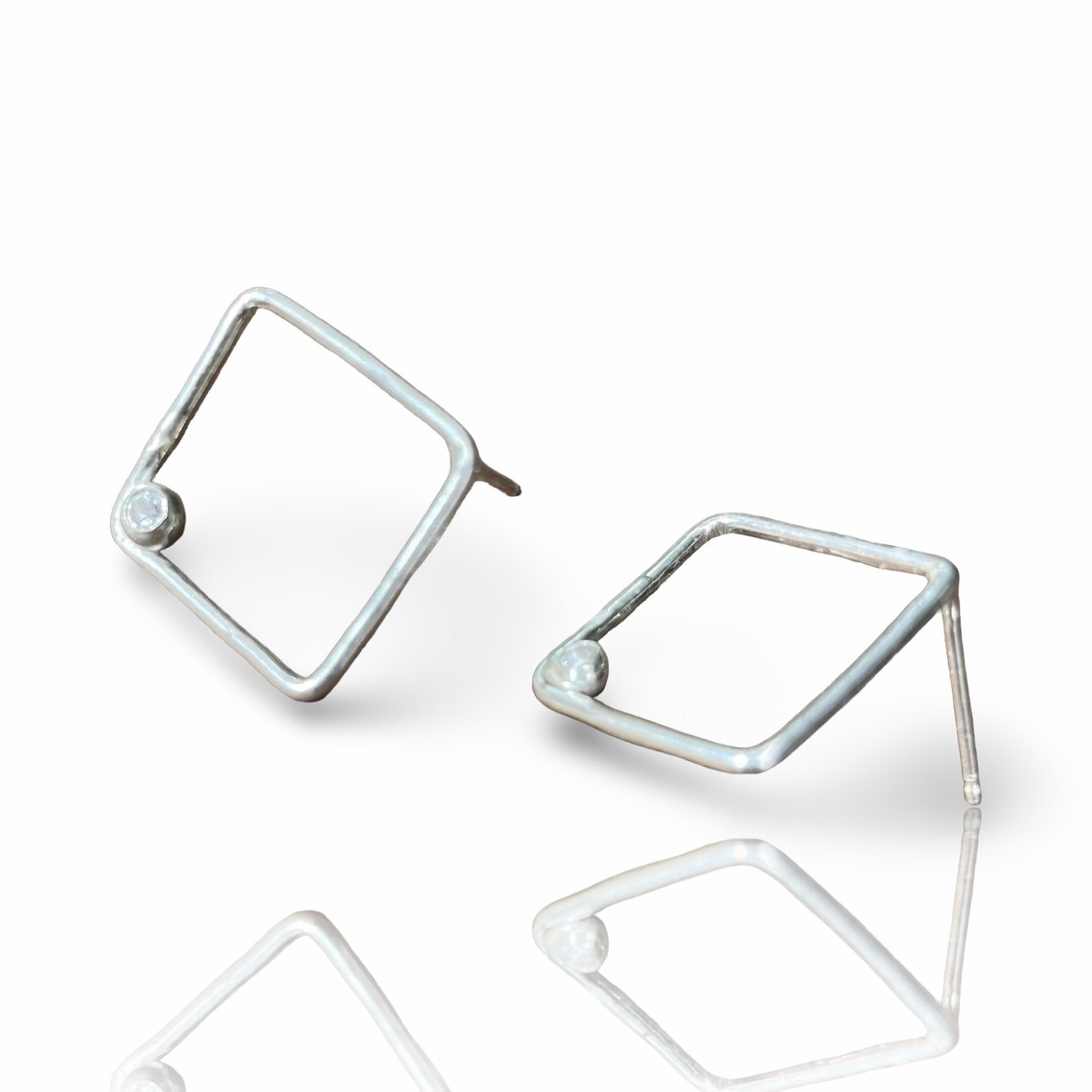 Minimalist sterling silver studs with cultivated white sapphire stones. Available in 3/4" height or 1" height.
