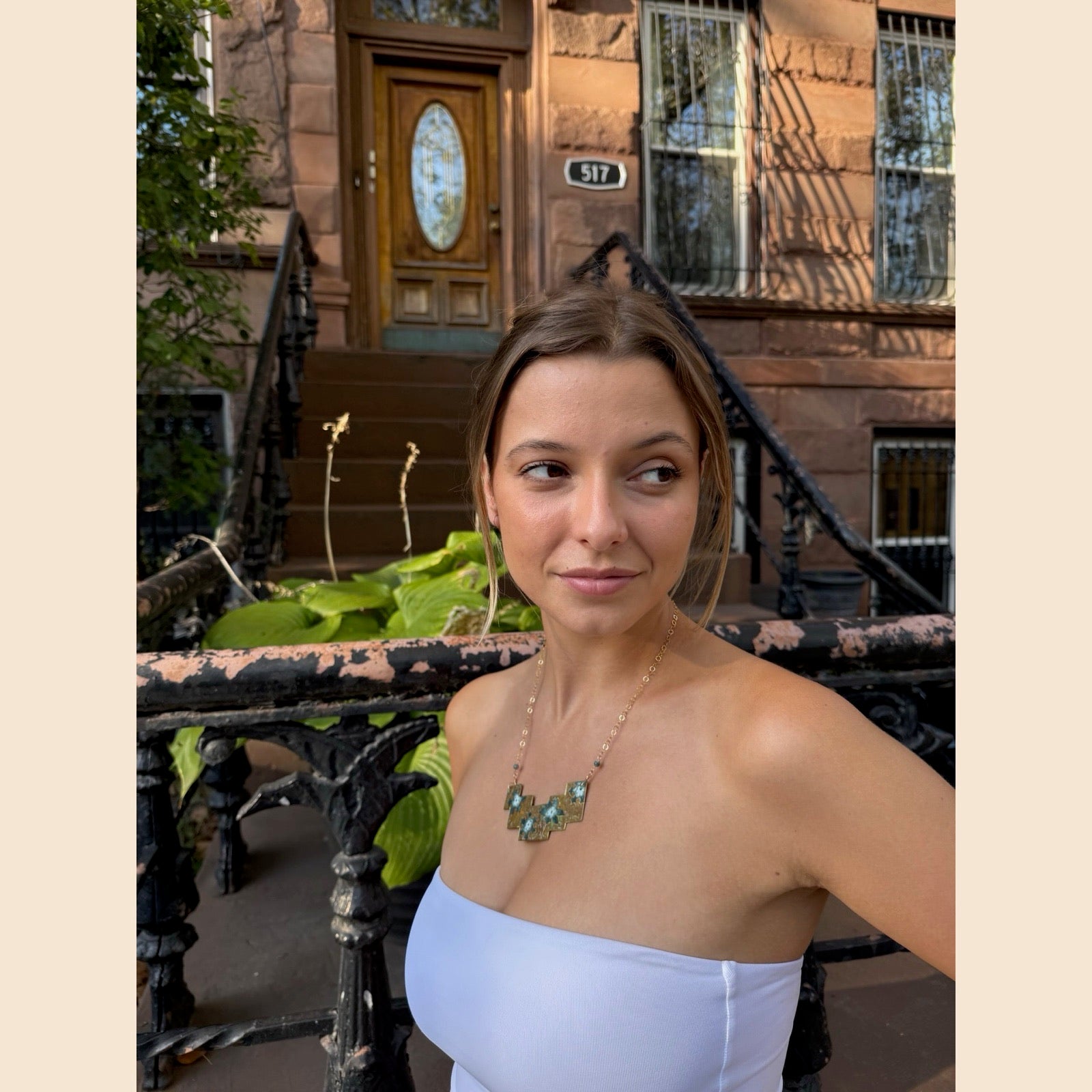 Stepped Floral Patina Necklace