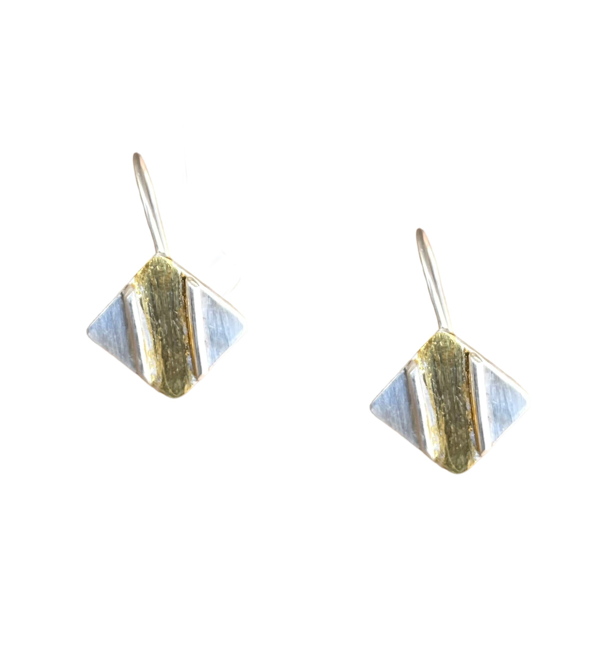 24k gold leaf fused on Fine Silver. Partially oxidized. Sterling Silver hooks.